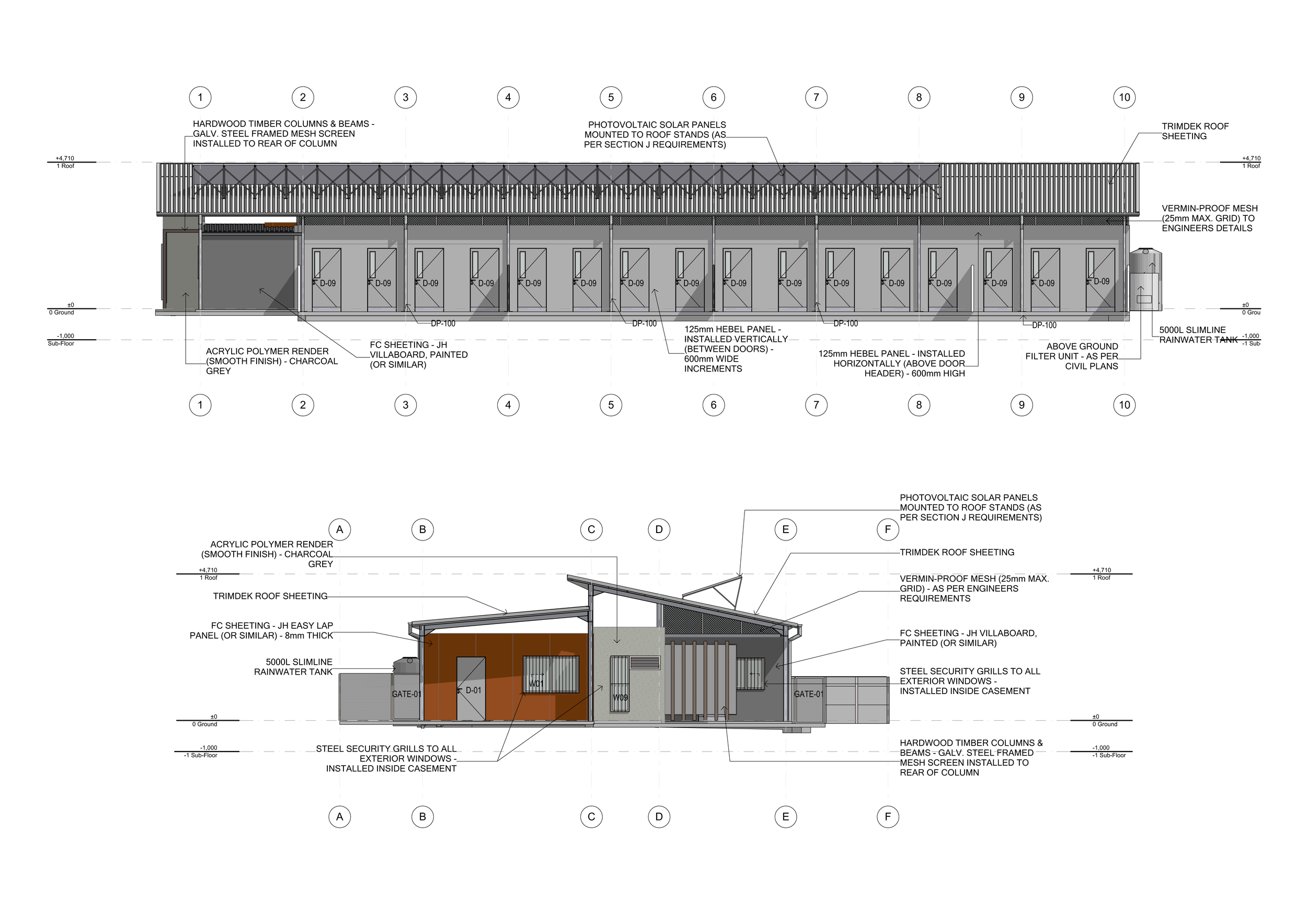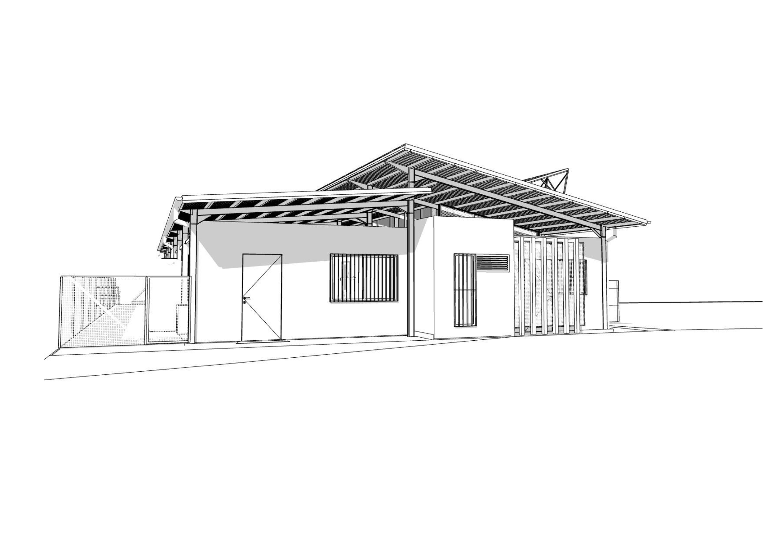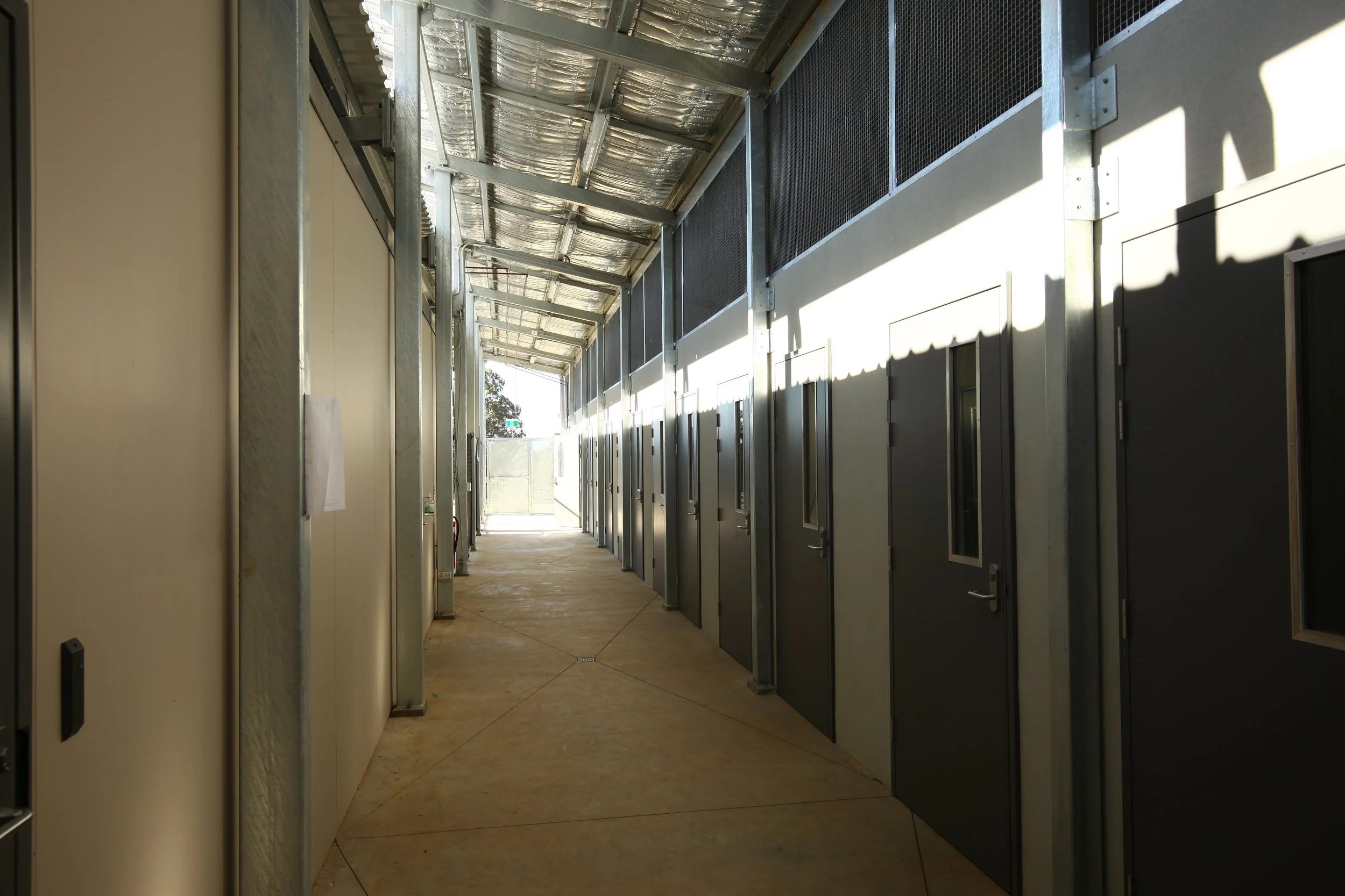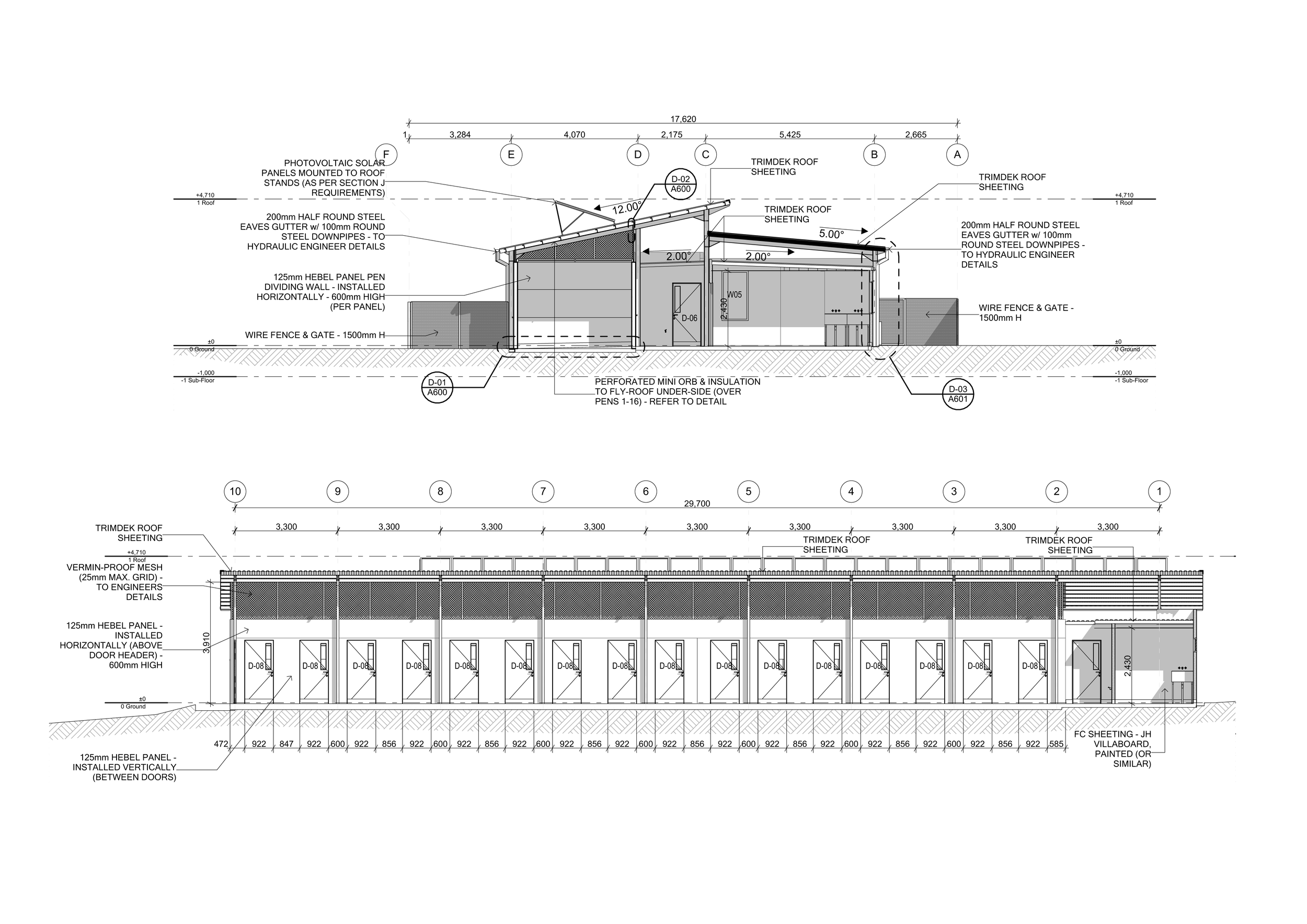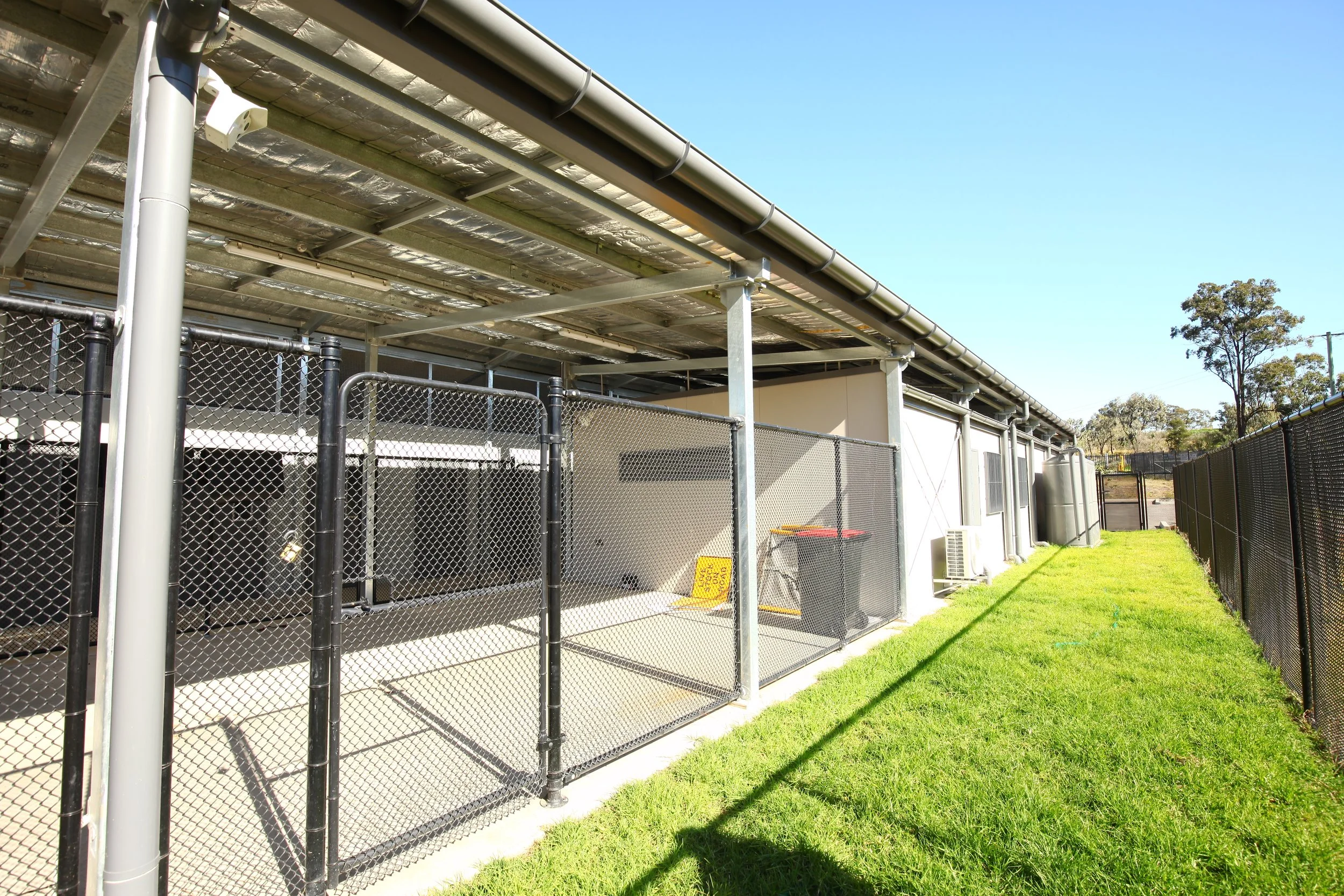 The use of materials with high thermal mass assisted with sound absorption to reduce loud barking and other disruptive animal sounds. It also plays a significant role in mitigating the temperature inside each pen, intended to moderate temperature fluctuations. The ‘fly-roof’ design takes the brunt of the hot summer sun, and gap at the top of the Hebel wall allows for cross ventilation for temperature moderation and flushing out stale air and animal odours.
