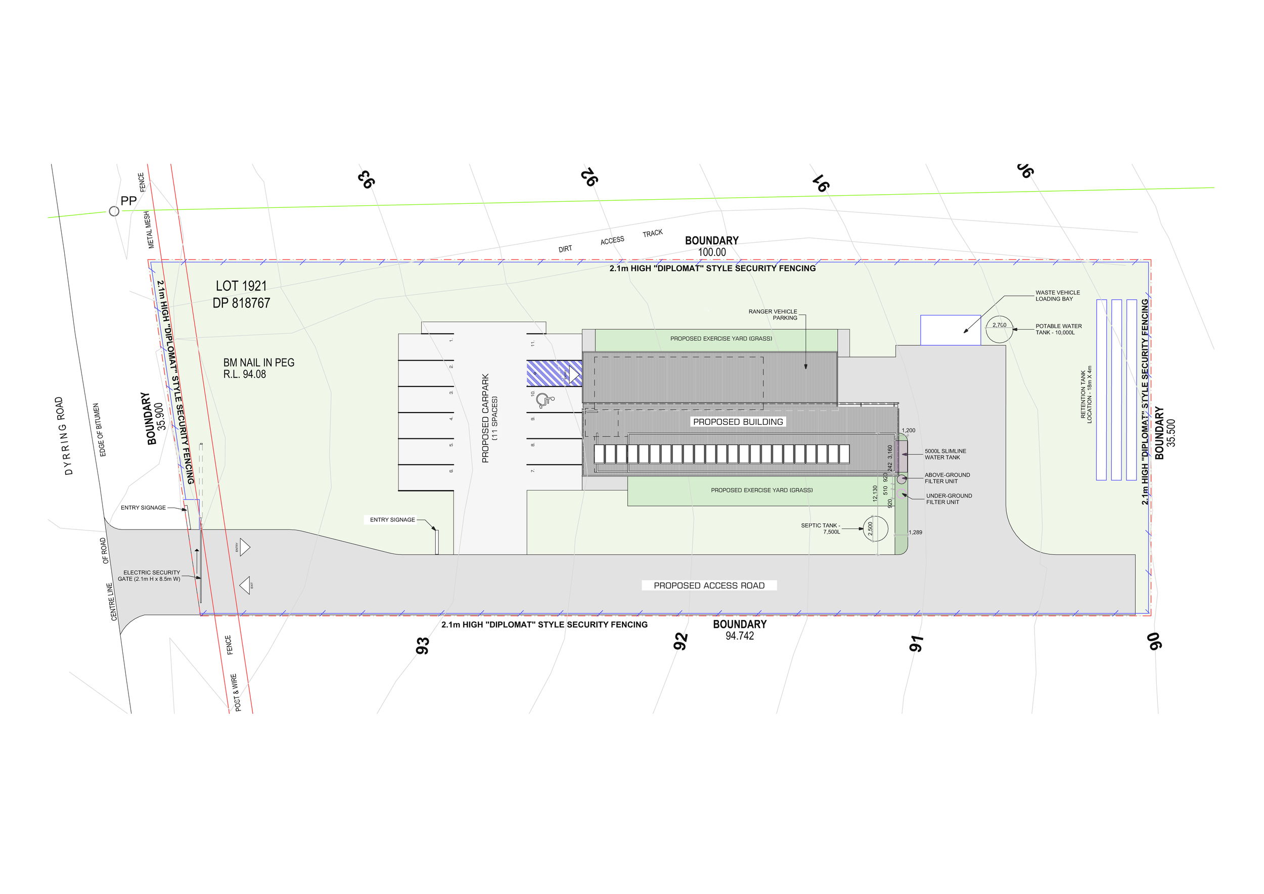 With the Australian Animal Welfare Standards & Guidelines at the forefront of the design process, room relationships to all enclosures was carefully considered. Viewing windows to quarantine rooms, ranger vehicles with automatic gates and security zoning, and public interface dictated the functionality in the layout. Portal frames were used as industrial structures to provide modular spacing for the pens, provide structure for the fly-over roof and to create the boundaries for security fenced zoning.
